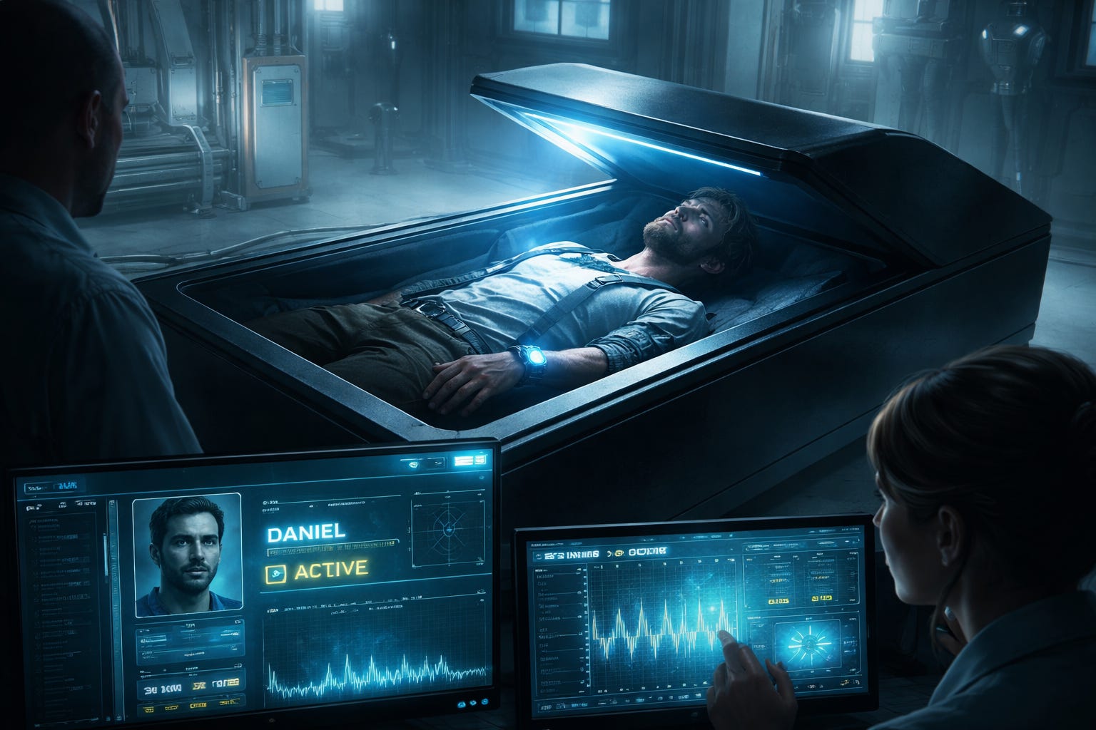 Outside the room, a technician glanced at the monitor. Daniel’s name blinked beside a green light marked ACTIVE.